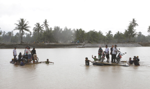 12月23日,在菲律宾北拉瑙省,人们利用木筏渡河。据菲律宾警方23日夜间公布的消息,热带风暴“天秤”在菲南部的棉兰老岛已造成至少200人死亡,另有70余人失踪。本栏文图均据新华社电