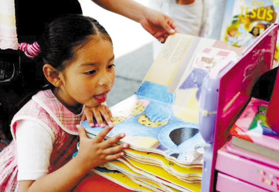 10月14日,一名女孩在墨西哥首都墨西哥城举办的图书节上选书。为期9天的墨西哥第八届图书节在墨西哥城的索卡洛广场举行,共有110家出版单位展销2000多种新图书,其中一半是儿童出版物。 新华社记者 马国强 摄