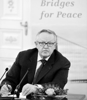 阿赫蒂萨里1937年出生,在1994年至2000年期间担任芬兰总统。他曾担任过联合国纳米比亚问题特别代表、前南斯拉夫问题特别代表和联合国负责行政管理事务的副秘书长。在卸去总统职务后,阿赫蒂萨里还出任过联合国负责处理非洲之角人道主义问题的特使等职务。2005年,在他斡旋和主持下,印度尼西亚政府和亚齐分离主义组织“自由亚齐运动”最终达成和平协议。