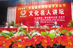 昨日上午,2008·中国鹿邑国际老子文化节文化名人讲坛在鹿邑县影剧院举行,国学大师、楚辞泰斗、文化名人文怀沙对老子及道学所作的精彩阐释,让1000多名观众如痴如醉,眼界大开。
