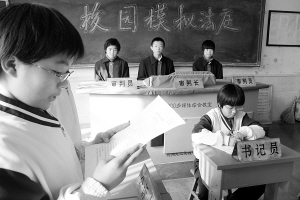 12月2日,山东博兴县实验中学“校园模拟法庭”开庭,“公诉人”在宣读“公诉书”。在12月4日全国法制宣传日来临之际,山东博兴县实验中学邀请该县人民法院法官走进课堂,指导同学们学习法律知识,组织“校园模拟法庭”,让孩子们穿上“法袍”当起“小法官”,体验法律的神圣。新华社发