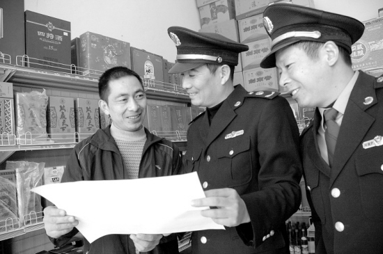 每年的12月4日是全国法制宣传日。昨天,川汇区工商人员登门入户向辖区商户宣传有关法律法规。据了解,今年12月4日是第八个“12·4”全国法制宣传日。 晚报记者 朱海龙 摄