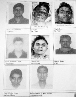 孟买警方首席调查员马里亚向公众展示嫌疑者的照片。马里亚说,照片从犯罪嫌疑人尸体拍摄得来,或来自他们随身带着的身份证明。他说,嫌犯年龄介乎20至28岁,部分人曾化名接受训练。