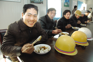 “香,这饺子真香!”在工地干净明亮的职工食堂里,许多农民工端着热腾腾、香喷喷的饺子,脸上露出了满足的笑容。一名叫张洪强的农民工吃了一碗后,连声说“好吃”,又盛了一碗。他告诉记者,以前别说是冬至,即便是春节,有时也不得不在外面过,所以,今年的冬至能吃到饺子,心里感觉特别温暖。