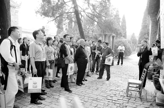 《周口晚报》创刊的第三年,成功举办了“全国晚报记者看周口”活动,来宾对《周口晚报》的发展给予了充分肯定。图为各地晚报的编辑记者在淮阳参观。晚报记者 朱鸿 摄