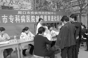 周口市疾病预防控制中心承担着全市健康教育和慢性病防治的工作职责。为保护群众身体健康,降低慢性疾病的发病率,促进我市经济发展,周口市疾病预防控制中心充分发挥职能,出台了高血压、糖尿病防治方案。方案以健康教育为先导,慢性疾病防治为载体,依托高血压、糖尿病防治中心,为病人建立健康档案,开展病人随访和治疗效果评价工作,积极探索慢性疾病防治模式和管理机制。同时,由健康教育慢性病防治科牵头,组织中心专科病医院的高血压、糖尿病、牙病等相关科室的医务人员,利用周六、周日和卫生宣传日深入社区、街道,开展多种形式的健康教育活动。