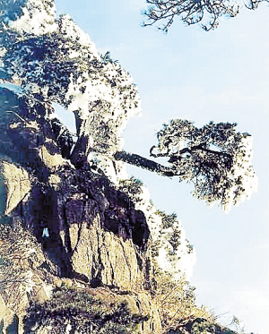 冬日的黄山,雨雪天后,常常出现大面积的云海。一年之中,黄山平均积雪约50天,雪后的黄山到处银妆素裹。当气温下降到零下,有雾或毛毛雨时,就有雾凇、冰挂等景象出现,满山玉树银花,晶莹闪烁。