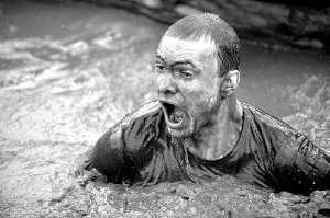 2月1日,一名参赛选手在泥水中拼搏。当日,一年一度的英国硬汉大赛在英格兰中部举行。