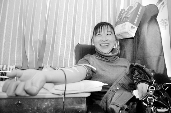 昨天,一些市民来到市区的周口人民商场无偿献血点,献出自己新年的第一份爱心。图为商水姑娘朱永霞上车捋袖,据悉,这是她第四次献血。 晚报记者 朱海龙 摄