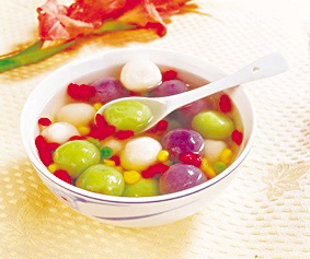 及至南宋,就有所谓“乳糖圆子”出现,这应该就是汤圆的前身了。到了明朝,人们以“元宵”来称呼这种糯米团子。刘若愚的《酌中志》记载了元宵的做法:“其制法,用糯米细面,内用核桃仁、白糖、玫瑰为馅,洒水滚成,如核桃大,即江南所称汤圆也。”清康熙年间,御膳房特制的“八宝元宵”,是闻名朝野的美味。马思远则是当时北京城内制元宵的高手,他制作的滴粉元宵远近驰名。符曾的《上元竹枝词》云:“桂花香馅裹胡桃,江米如珠井水淘。见说马家滴粉好,试灯风里卖元宵。”诗中所咏的,就是鼎鼎大名的马家元宵。