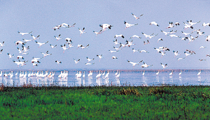 的确有些喧闹,即使是在一望无垠的鄱阳湖浅水湖区,它们的声音依然从四面八方奔袭而来。听起来,就像是无意中闯进了一支乐队的排练场:有些是紧张的哨音;有些像是高亢的笛子;有些则是无序的啾鸣……当然,你不能指望它们——近30万只候鸟演奏出什么曲子,但这的确是世界上排场最大的合唱之一。
