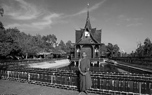 这批僧人已经用绿色的喜力啤酒瓶,棕色的泰国大象啤酒瓶,以及一些废弃的软饮料瓶子在寺院建造了约20栋建筑物。这些建筑物内的所有设施,从垃圾焚化场到卫生间均由废弃瓶子搭建。(王辰)