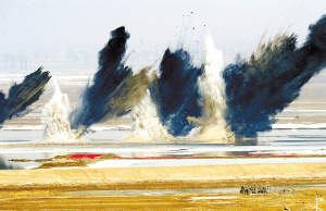 3月18日,空军轰炸机在黄河内蒙古达拉特旗河段炸冰凌。当日,中国人民解放军空军某部出动3架轰炸机在黄河内蒙古达拉特旗恩格贝镇蒲圪卜河段冰凌区执行防凌任务,将堵塞在河道中的冰凌炸碎,疏通河道。黄河凌汛多发生在春季,以内蒙古河段最为严重。黄河上游一般先于下游开河,冰水齐下后会造成明显的洪峰。到达内蒙古河段时,冰凌又会与尚未解冻的冰层壅塞结成冰坝,导致水位迅速抬升,严重时会造成漫堤决口等灾害。 新华社发