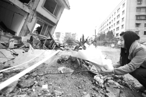 4月1日,记者经特许,随祭奠亡灵的想乡亲进入北川老城。“轻点,亲人已经安息,惊扰于心何忍”,在县城的废墟上,“非祭勿扰”的提示牌随处可见。废墟上,悲情弥漫,哭声四起,人人都向遇难亲人倾吐衷肠。据悉,昨日,有约1万人前往北川中学和县城凭吊亡灵。