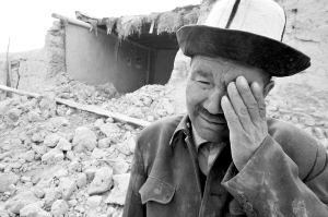 4月21日,新疆阿合奇县良种繁育场职工乌鲁孜·要尔达西在震毁的房屋前忍不住掉下泪来。北京时间4月19日12时08分,在新疆维吾尔自治区克孜勒苏柯尔克孜自治州阿合奇县发生里氏5.5级地震,震中位于县城北偏西43公里处,震源深度约为7公里。经当地多个部门的紧张工作,目前各项救灾工作正在有序进行中,灾区社会和群众情绪基本稳定。 新华社发
