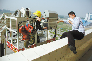 消防官兵演练高楼救人