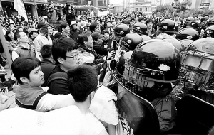 2日下午,韩国市民在首尔站入口前广场举行了“龙山惨案国民追悼大会和烛光1周年行动日”活动,其间市民们和警方发生冲突,韩国警方在镇压“烛光集会1周年”集会的过程中,与示威队又发生多起冲突,并逮捕112人。杨微 摄