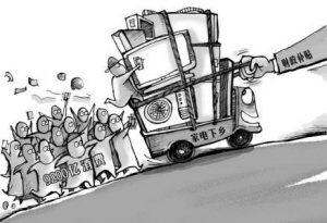 还有人说,老百姓最不满意的是,“家电下乡”产品质量不让人放心,价格比市场的高,补贴少,程序多。现在又搞“汽车下乡”,说不定有多少猫腻呢。