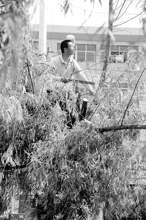 工作人员表示,他们将赶在雨季来临之前,把市区主要路段行道树枯枝修剪完毕。