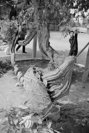 葛花树还有险些被“抢”的经历。许秀丽说,有一年,一位自称是市区某文物单位工作人员的男子拿着铁锨等工具来到学校,直奔紫藤开始刨挖,说要弄走保护起来。这下老师们可不愿意了,纷纷前来和男子理论,把他的铁锨也给扣了。“树最终被我们留了下来,它是学校的一部分,怎么能让它离开呢?”许秀丽抚摸着树干满怀深情。