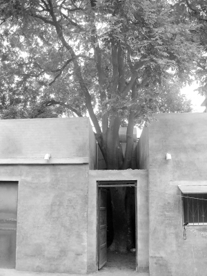 这棵皂角树隔开了王建周家的厨房和卧室,使得他们家的平房成“凹”形分布。当初之所以这样盖房子,也正是考虑了要给这棵树留下生存空间。两间屋子间,大约三四平方米大的一个空地,成了这棵老树的栖身之所。为了保护这棵老树,王建周还为这棵树栖身的小院安了一个小门。这样,王建周家就有两个门,一个是他们家的大门,一个是皂角树的小门。