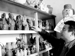 家住扶沟县城书院街家属院的王金山从上世纪80年代开始专心收藏酒瓶。他的足迹几乎踏遍祖国大江南北。如今,当年朝气蓬勃的壮小伙已到不惑之年,但那股“追求”酒瓶的热情依然不减。截至目前,他已收藏了1500多个形状各异的酒瓶,涉及400多种样式,家里的窗台上、床底下、茶几上全是酒瓶,就连书柜里也摆满了形态各异的酒瓶。据今年47岁的王金山介绍,他收藏的酒瓶来自全国各地,样式各具特色。