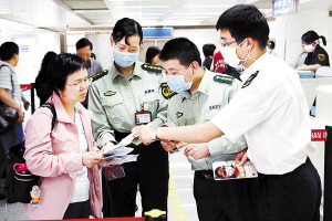 5月13日,在杭州萧山国际机场,工作人员向入境旅客发放甲型H1N1流感防治宣传材料。近期,我国连续发现两例甲型H1N1流感病例,各地已启动应急机制,加强戒备,严防甲型H1N1流感流入。
