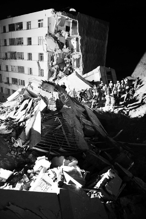 5月16日,甘肃省兰州市九洲开发区一住宅小区附近山体滑坡导致该小区一住宅楼两个单元在当天20时50分左右垮塌,另有一个单元部分垮塌。至17日19时15分左右,已发现7名遇难者遗体。新华社发