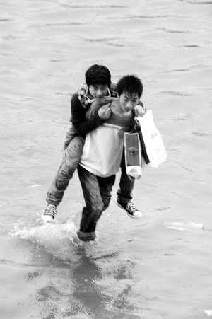 5月15日,淮阳县普降大雨,该县西城区新民路、教育路部分路段由于下水道堵塞,排水不畅,造成道路及附近小区严重积水,给学生出入校园及市民出行带来极大不便。