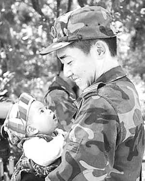 去年“5·12”汶川特大地震发生之后,一张战士逗孩子笑的照片被全国媒体和网络广为转载,感动了全中国,这位名叫盛于峰的战士也因此被称为“最美微笑战士”。而成名后的他选择了退伍复员,日前成为一名重庆市政监察执法大队城管队员。