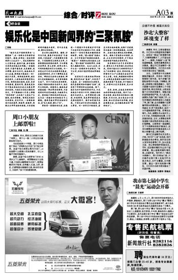 娱乐化是中国新闻界的“三聚氰胺”