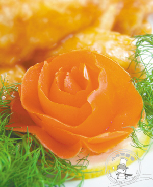 佳肴边配一朵娇艳的红花,是否令你更加馋涎欲滴?这朵红花并不难做,用西红柿就可做成,小编这就教你。