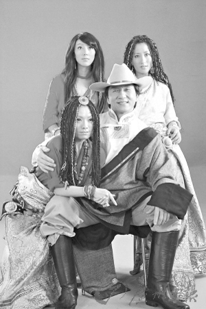 成龙大哥和“阿佳组合”一起穿着藏袍进行《爱飞翔》、《呼唤》的MV拍摄。