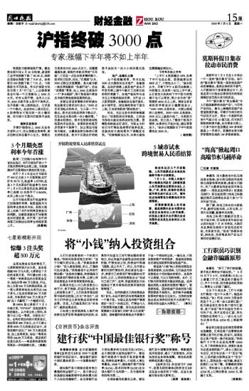 沪指终破3000点