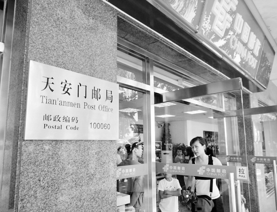 7月9日,游客在北京天安门邮局办理邮寄业务。位于天安门广场东侧路的北京天安门邮局7月8日正式对外营业,向中外游客提供邮政服务。这是邮政部门首次在天安门设置固定的邮政服务网点。新华社发