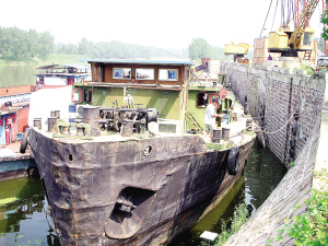 “皖龙6588”号船长姓林,他介绍,这艘货船核定载重1200吨,在内河航道可载1800吨,动力为500马力。船仓内装载有4个长、宽各约9米的集装箱,箱内是由台湾台塑集团在洛阳投资的孟津电厂的定子配件。“沈丘船闸和郑埠口船闸宽度都是12米,我的船刚好能通过。”他笑呵呵地说道。