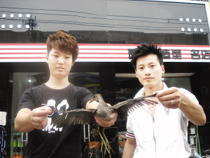 李潇男介绍,当日9时许,他正坐在发廊门前乘凉,忽然看到一只鸟从西向东飞来,飞到发廊门口时,突然垂直落下不动了。他走上前,发现这只鸟一个劲儿往前窜,可任凭它怎么用劲就是飞不起来,嘴里还不停地叫着,像是在哀求快救救它。出于怜悯,李潇男和店里的员工王国磊一起,不顾被啄伤的危险,把这只受伤的鸟带到附近一个诊所里做了简单包扎。