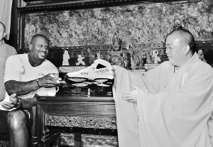 奥尼尔向释永信赠送他签过名的篮球鞋