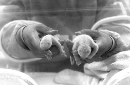 7月20日,成都大熊猫繁育研究基地工作人员护理育婴箱中的“双胞胎”大熊猫。7月19日,成都大熊猫繁育研究基地17岁的大熊猫“莉莉”,产下今年全球首对大熊猫双胞胎。这是外号为“病西施”的“莉莉”第一次成功产下一对健康宝宝,经过专家的检查,两只幼仔均为雌性,体重分别为122克和100克,十分健康。新华社发