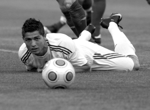 本报综合消息 世界足坛身价最高的球星C罗纳尔多昨日首次代表皇马亮相赛场,不过表现平平,只踢了半场比赛便被换下场。皇马多亏另一位新人、法国球星本泽马终场前的进球,才保住面子,1比0小胜爱尔兰半业余的夏洛克队。