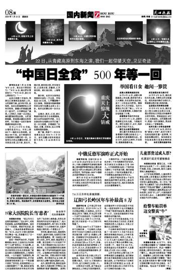 “中国日全食” 500年等一回