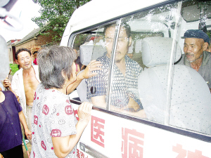 本报讯 “医院来给倪老肥治病啦,倪老肥有救啦!”7月23日,周口市精神病医院院长胡杰一等人,刚到郸城县张完乡黄庄行政村倪庄村,就被200多名村民簇拥着走进倪老肥家。