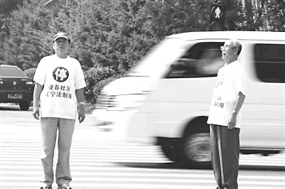 22日,一队流动的“人体红绿灯”现身沈阳市府大路广宜街交通岗,他们不仅具有普通红绿灯的功能,而且还具有“护送行人”、“劝阻行人”的特殊功能。这些“人体红绿灯”由沈阳市沈河区朱剪炉街道晓春社区的10名党员组成。 中新 摄