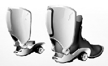 现代都市的交通拥堵现象日益严重,面对出行问题,每个人都很苦恼。打个比方,从居住地到目的地有2公里远,步行太累,开车又有些浪费;选择公交车,走到车站的路程也不见得短。这时要有一个灵巧的代步工具就好了。那么这款遥控代步鞋套肯定适合你,它的时速每小时16公里,适合工作地点离家不远的上班族使用。还配有发动机和变速箱,通过手上的遥控器控制刹车和启动。(小凡)