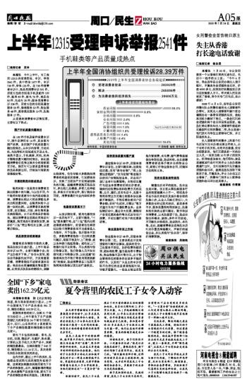 上半年12315受理申诉举报2541件
