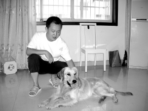 7月28日上午,记者来到赵女士家。刚进门,一个黄色的影子就闪了出来,热情地和我们“打招呼”,庞大的身躯,呜呜的欢迎声,趴在我们身上的亲热劲儿,着实吓了我们一跳。