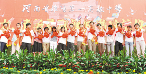 会上,市教育局局长张治国宣读了周口市教育局对淮阳一高的嘉奖令。副市长李绍彬在发表讲话中说,淮阳一高2009年高考取得了令人瞩目的成绩,为淮阳和周口人民赢得了骄人荣誉。他勉励淮阳一高再接再厉,不断超越,为创建中原名校乃至全国名校不懈努力。淮阳县委书记任连军代表淮阳县四大班子祝贺淮阳一高2009年高考所取得的骄人成绩,希望淮阳一高不断进取,站立时代潮头,为淮阳教育事业做出新的更大的贡献。淮阳一高校长王业生回顾了该校创业历程。他表示,淮阳一高一定会以更加饱满的热情、更加高昂的斗志,为淮阳的教育事业再立新功。