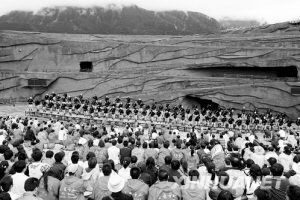 ▲众多游客在丽江观看实景演出《印象·丽江》(7月28日摄)