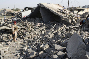 当天凌晨两辆装有炸弹的汽车在这个村庄几乎同时引爆,爆炸时两车相距不到500米。爆炸把当地35所民宅夷为平地。地面上留下一个深达2米的大坑。