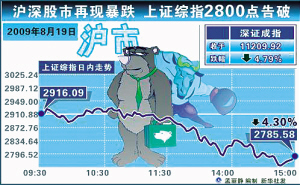 新华社电 昨日早盘沪深两市小幅高开,沪指随后在2900点上下震荡,成交量比18日略缩。午后股指再现跳水,沪指盘中跌破2800点。